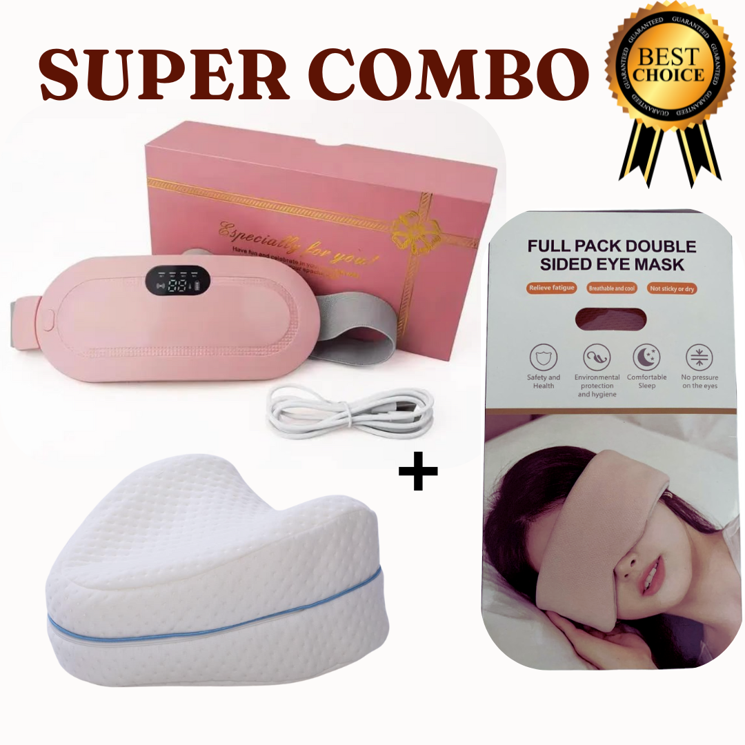 Cinturón Térmico Eléctrico + Almohada de Apoyo- Rodillas + Antifaz de descanso
